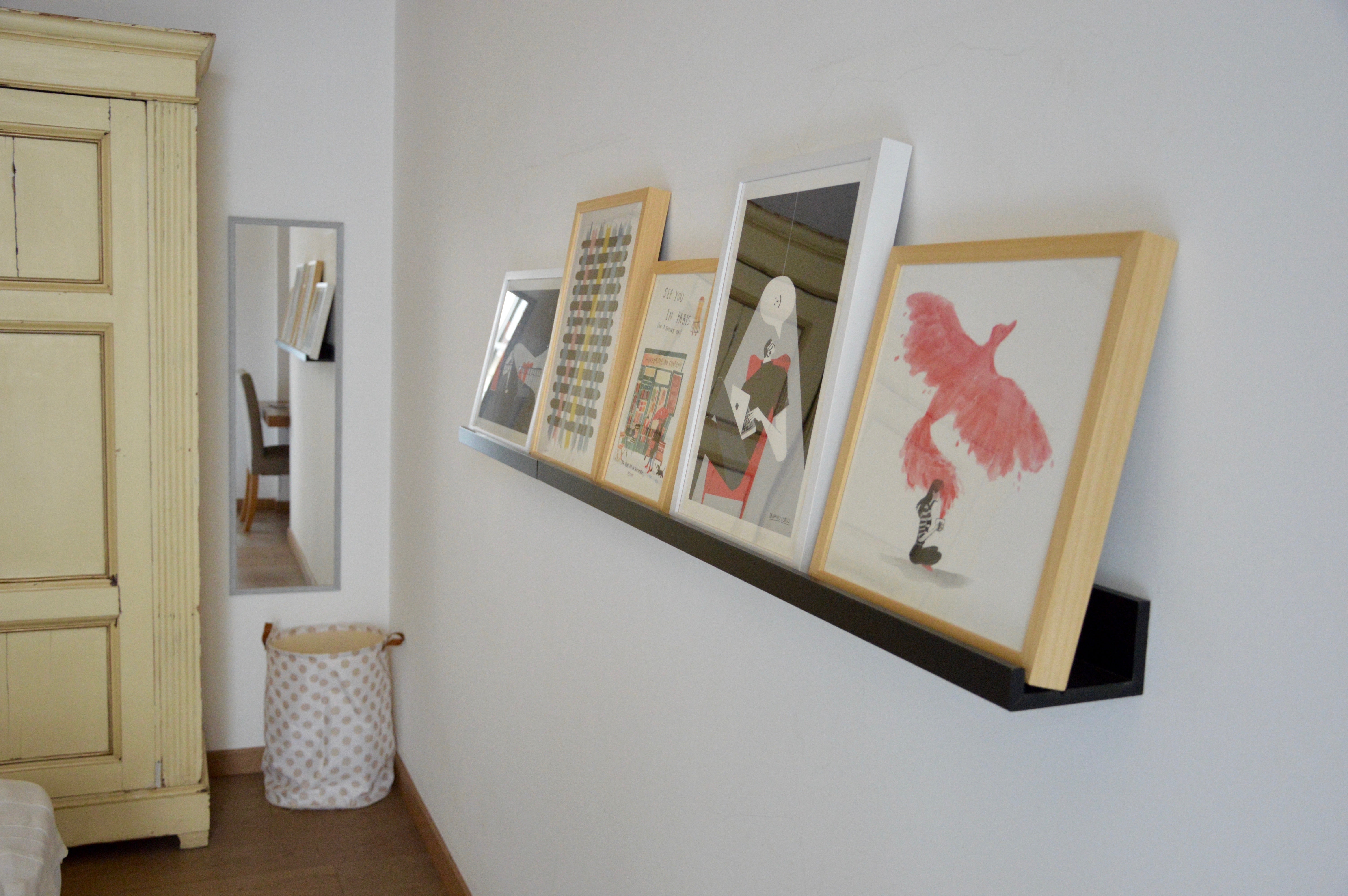 Vediamo ora nel dettaglio cosa significa posizionare le opere in quattro punti strategici della stanza in questio ne: sopra una cassettiera d’angolo, in una nicchia dove è stato ricavato un punto scrivania, su una mensola lunga e stretta difronte al letto e sopra il letto stesso.